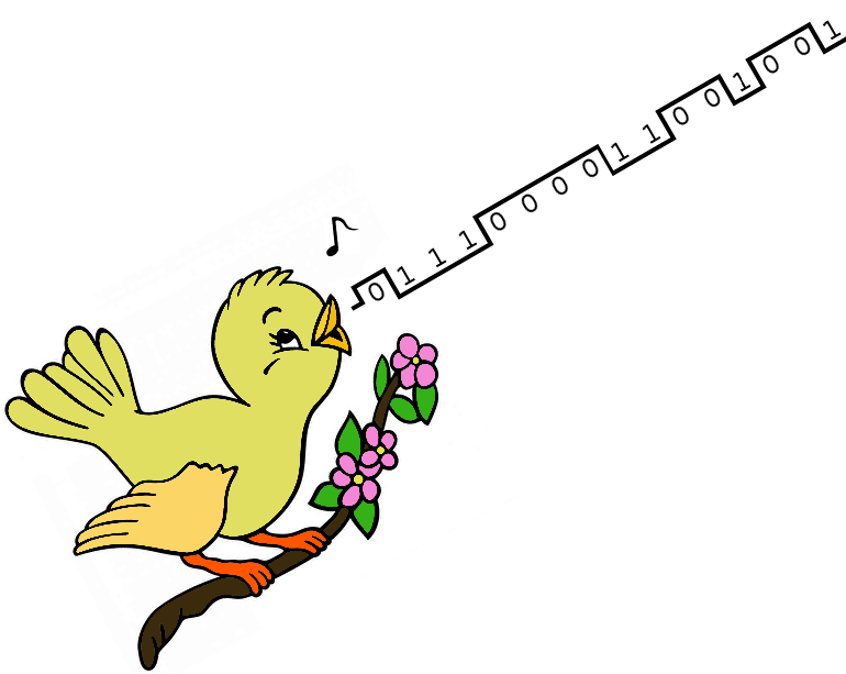 Digits are coded as 16 bits and transferred at a rate of 100 bits per second. Each bit consists of the signaling tones F0 and F1 and has a duration of 10 ms. All digit starts with sync pattern ("0 1 1 1 0").